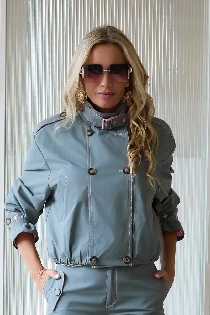 BORDADO TRASERO Y ABOTONADURA TIPO TRENCH.
