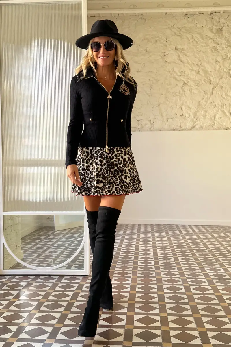 CHAQUETA DE PUNTO CANALÉ,CON CREMALLERA DORADA Y DETALLE DE BOTONES DORADOS EN BOLSILLOS.