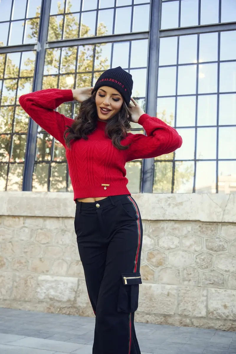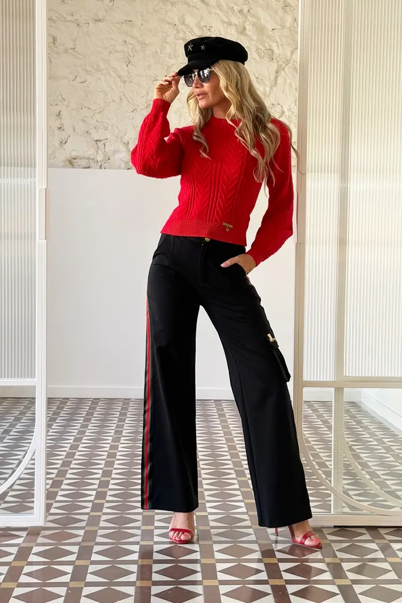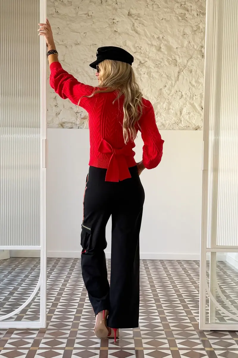 JERSEY DE PUNTO TRENZADO,DETALLE DE LAZO EN LA ESPALDA Y MANGA ANCHA.