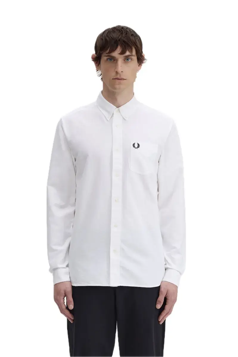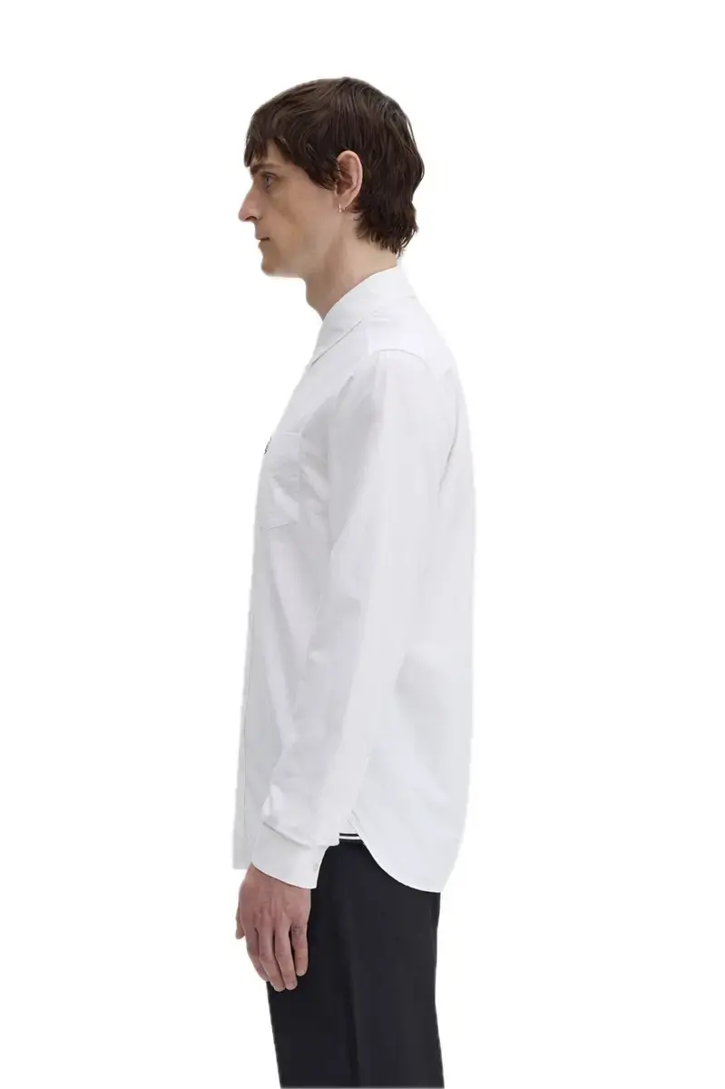 CAMISA BLANCA CON CUELLO ABOTONADO,BOLSILLO EN EL PECHO Y LOGO BORDADO EN MARINO.CON DETALLE ELÁSTICO EN LATERAL.100% ALGODÓN.