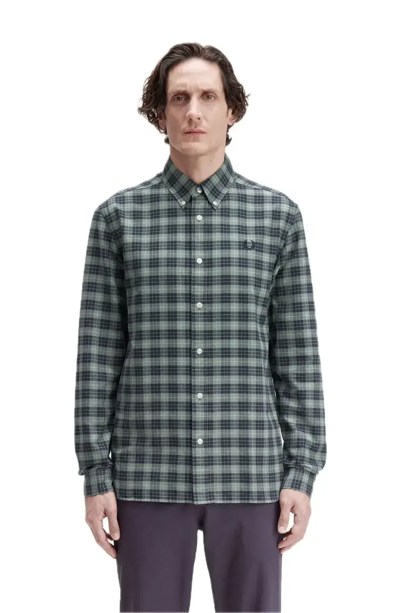 CAMISA DE CUADROS VERDE Y MARINO,LOGO BORDADO EN MARINO.100% ALGODÓN.