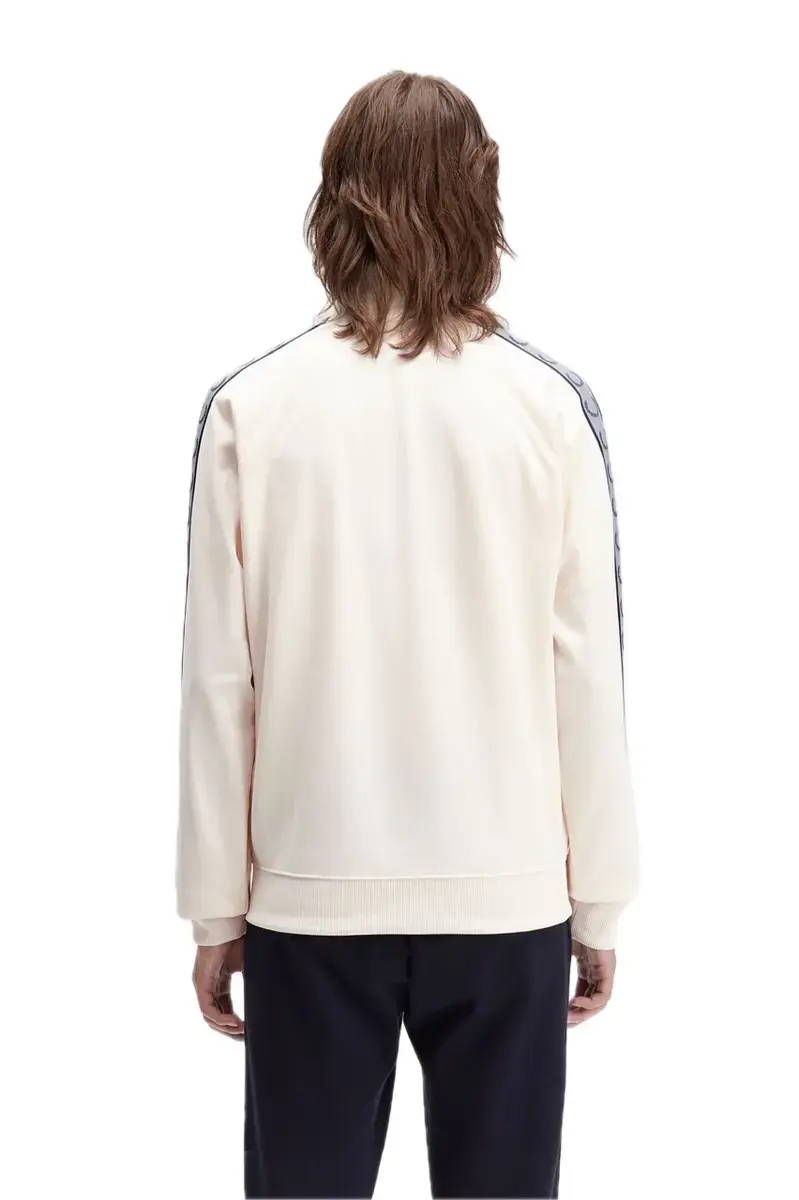 CHAQUETA CON CREMALLERA Y FRANJA EN NEGRO CON LOGO FRED PERRY EN EL BRAZO.