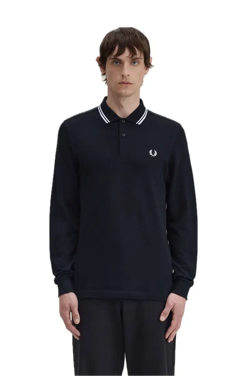 POLO MANGA LARGA ,LINEAS EN CONTRASTE EN SOLAPA,BORDADO FRED PERRY EN PECHO Y PUÑOS DE CANALÉ.
