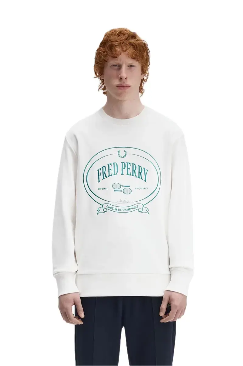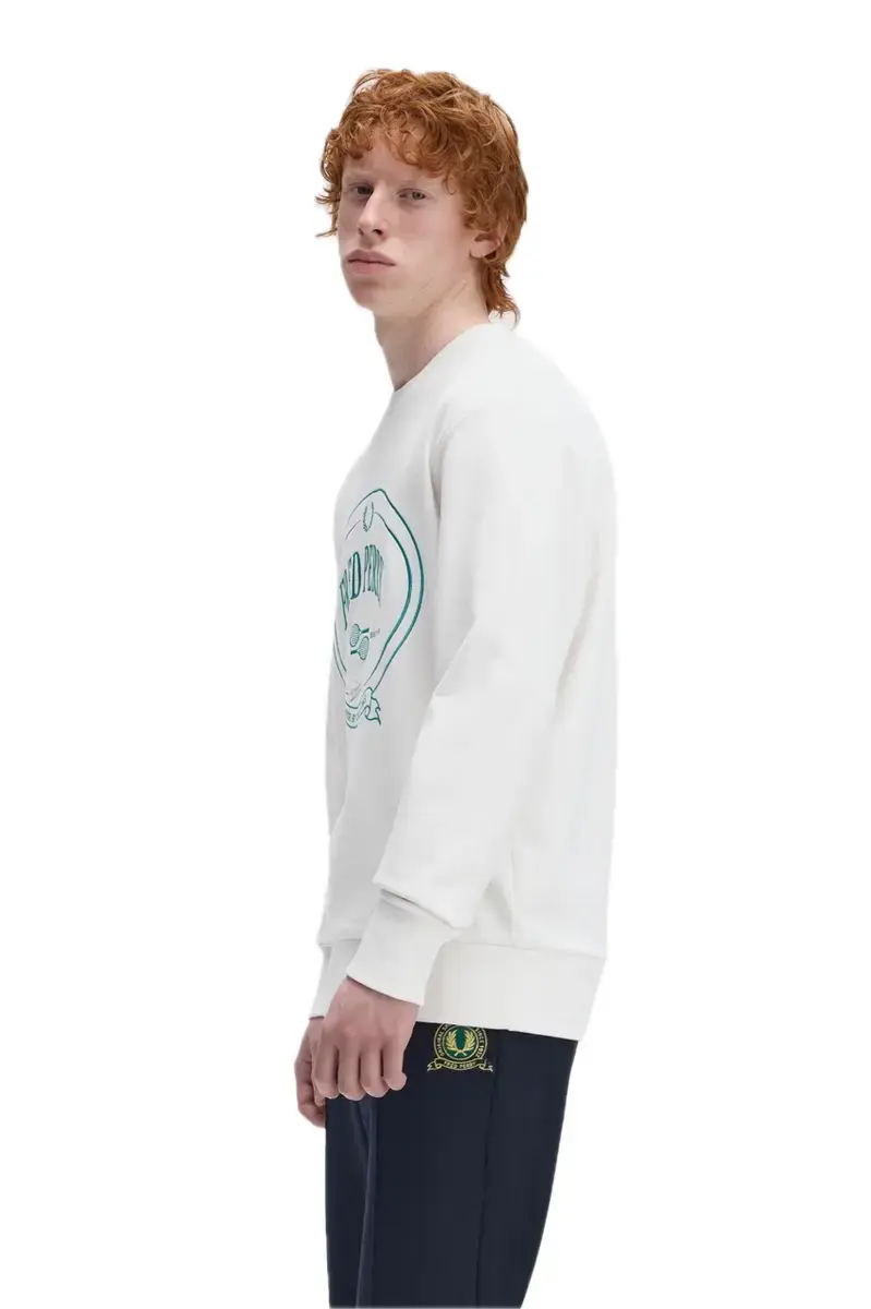 SUDADERA CRUDA CON CUELLO REDONDO,LETRAS BORDADAS EN COLOR VERDE CON MOTIVO DE TENIS.100% ALGODÓN.