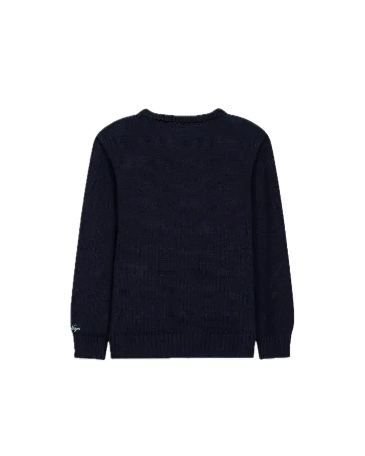 Presenta cuello redondo,logo y letras de la marca bordadas en colores en la parte frontal,en color azul marino que lo hace elegante y versátil.