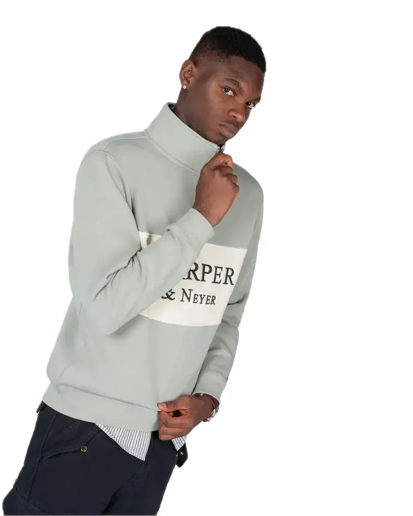 Sudadera kaki,con media cremallera y panel frontal en contraste.
