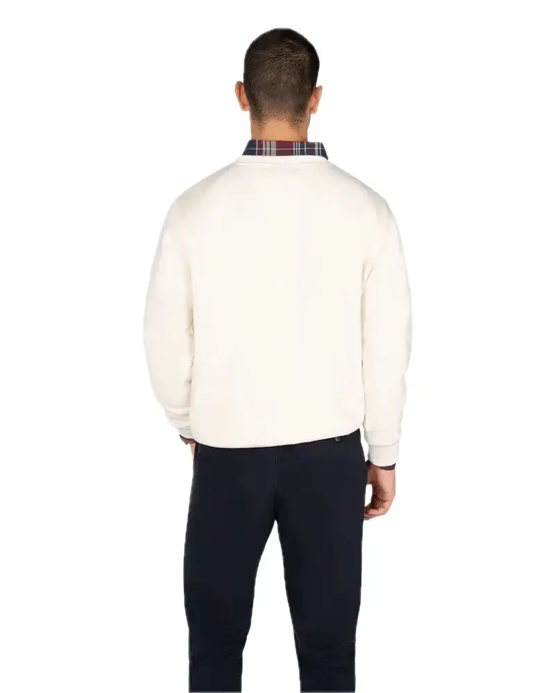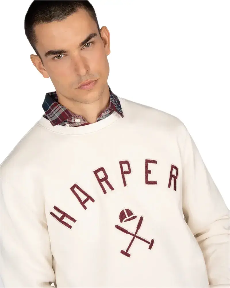SUDADERA DE ALGODÓN CRUDA CON LETRAS SUPERPUESTAS EN COLOR BURDEOS.