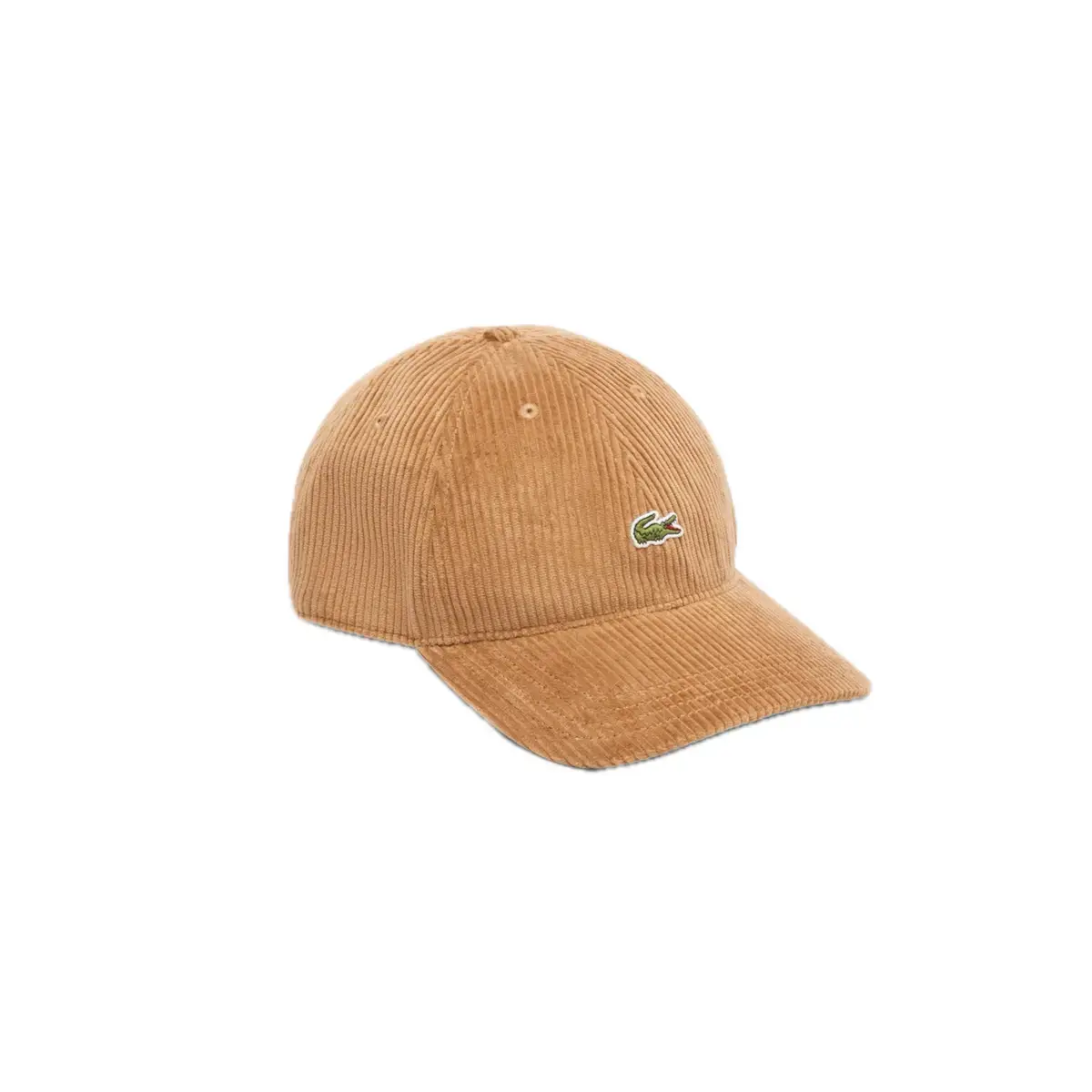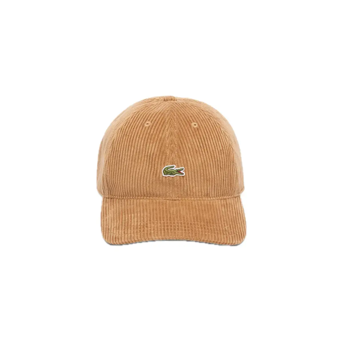 GORRA MARRON EN TEJIDO PANA DE ALGODÓN,TALLA UNICA CON CORREA AJUSTABLE Y COCODRILO BORDADO EN LA PARTE DELANTERA.
