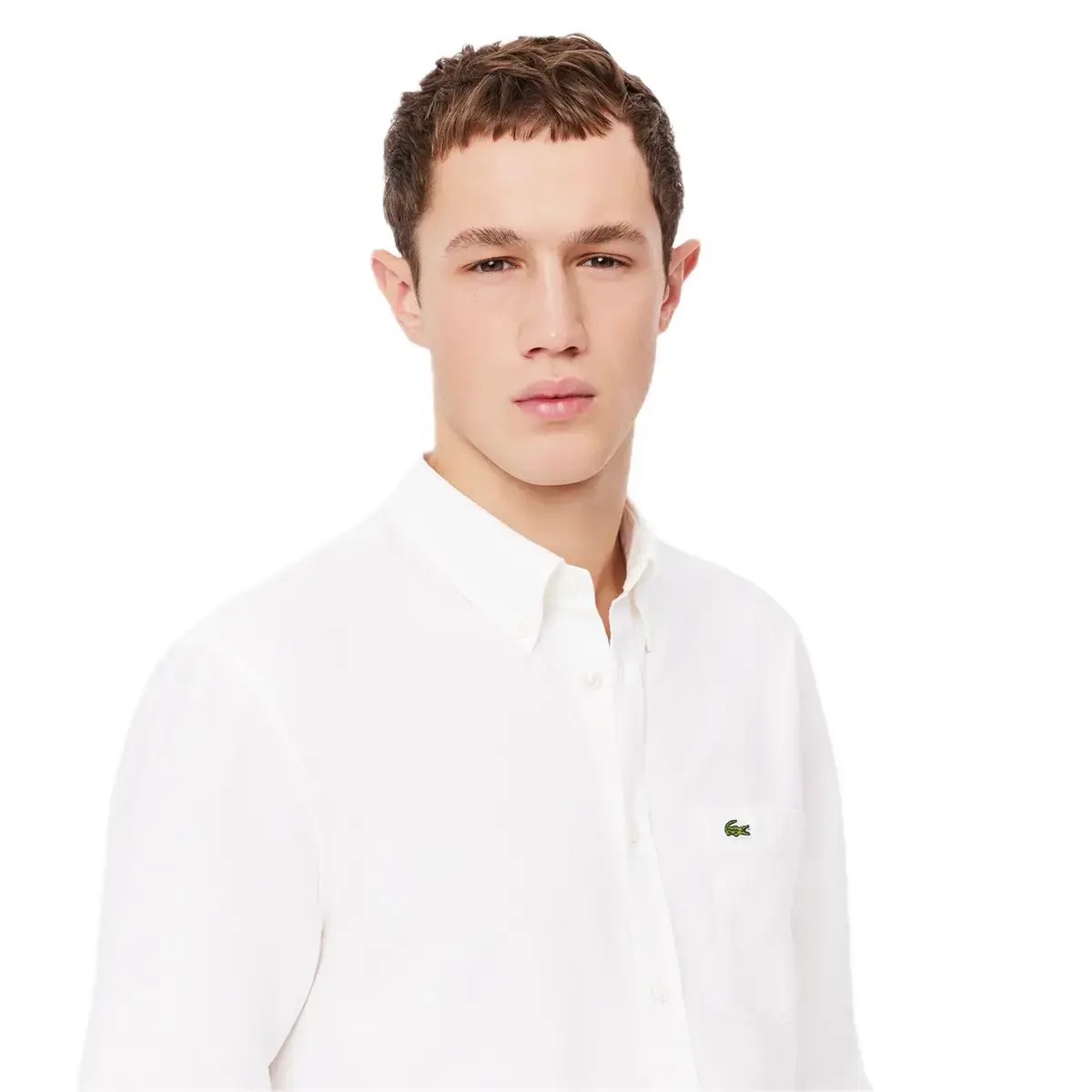 CAMIS BLANCA OXFORD DE CORTE REGULAR,TEJIDO EN ALGODÓN ORGÁNICO.CON PINZAS EN LA PARTE TRASERA Y BOLSILLO DELANTERO CON COCODRILO GRABADO.