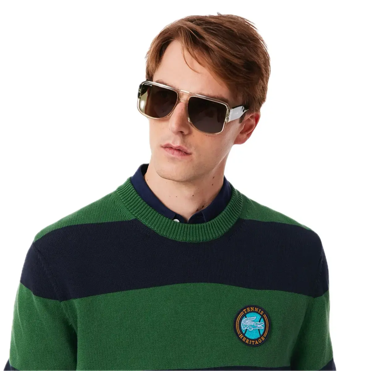 JERSEY DE RAYAS RETRO,DE CORTE CLÁSICO EN ALGODÓN ORGÁNICO,CON INSIGNIA BODADA DE INSPIRACIÓN EN TENIS Y COCODRILO BORDADO EN EL BAJO.