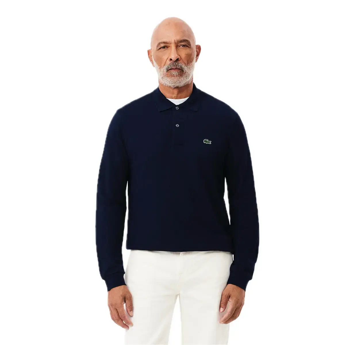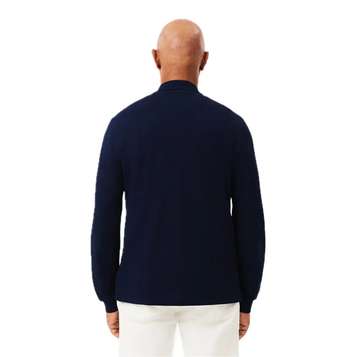 POLO PIQUÉ MANGA LARGA EN COLOR MARINO,CON BORDE DE CANALÉ EN CUELLO Y PUÑOS,COCODRILO BORDADO COSIDO EN PECHO.
