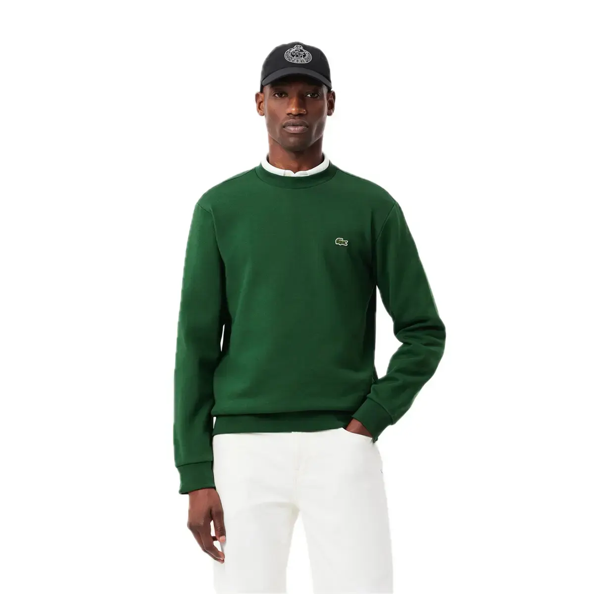 SUDADERA DE LANA DE ALGODÓN CEPILLADA,CON CUELLO REDONDO Y COCODRILO BORDADO EN EL PECHO.