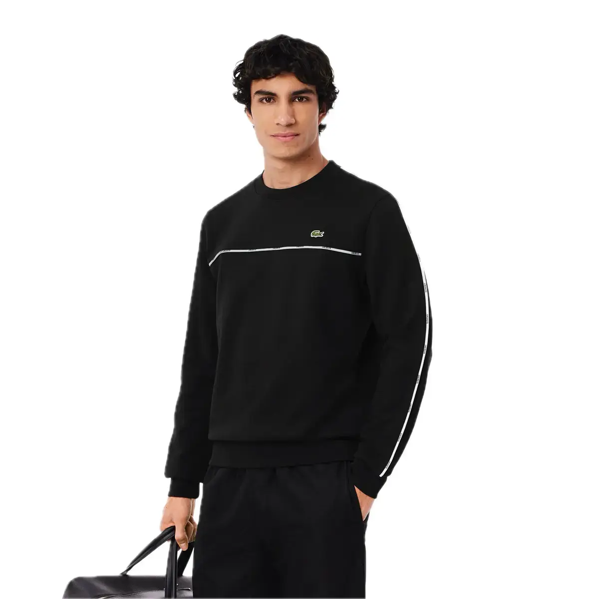 SUDADERA DE FELPA DE ALGODÓN,LLEVA UN RIBETE MARCA LACOSTE POR PECHO,MANGAS Y CUELLO A SU VEZ RIBETE DE CANALÉ EN CINTURA Y PUÑOS.