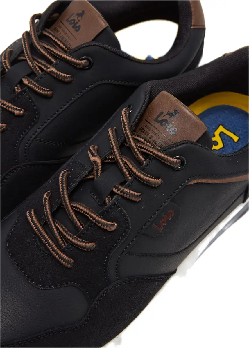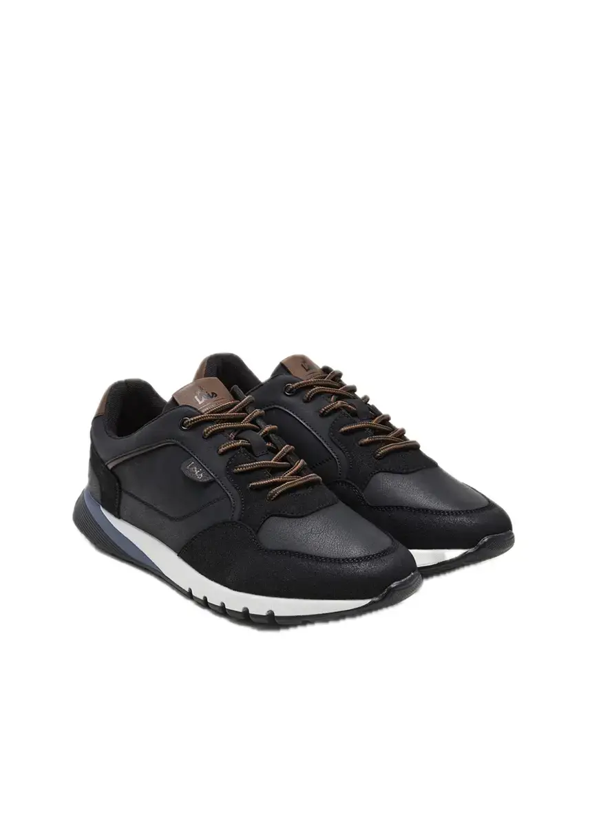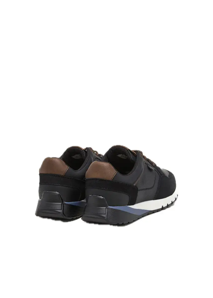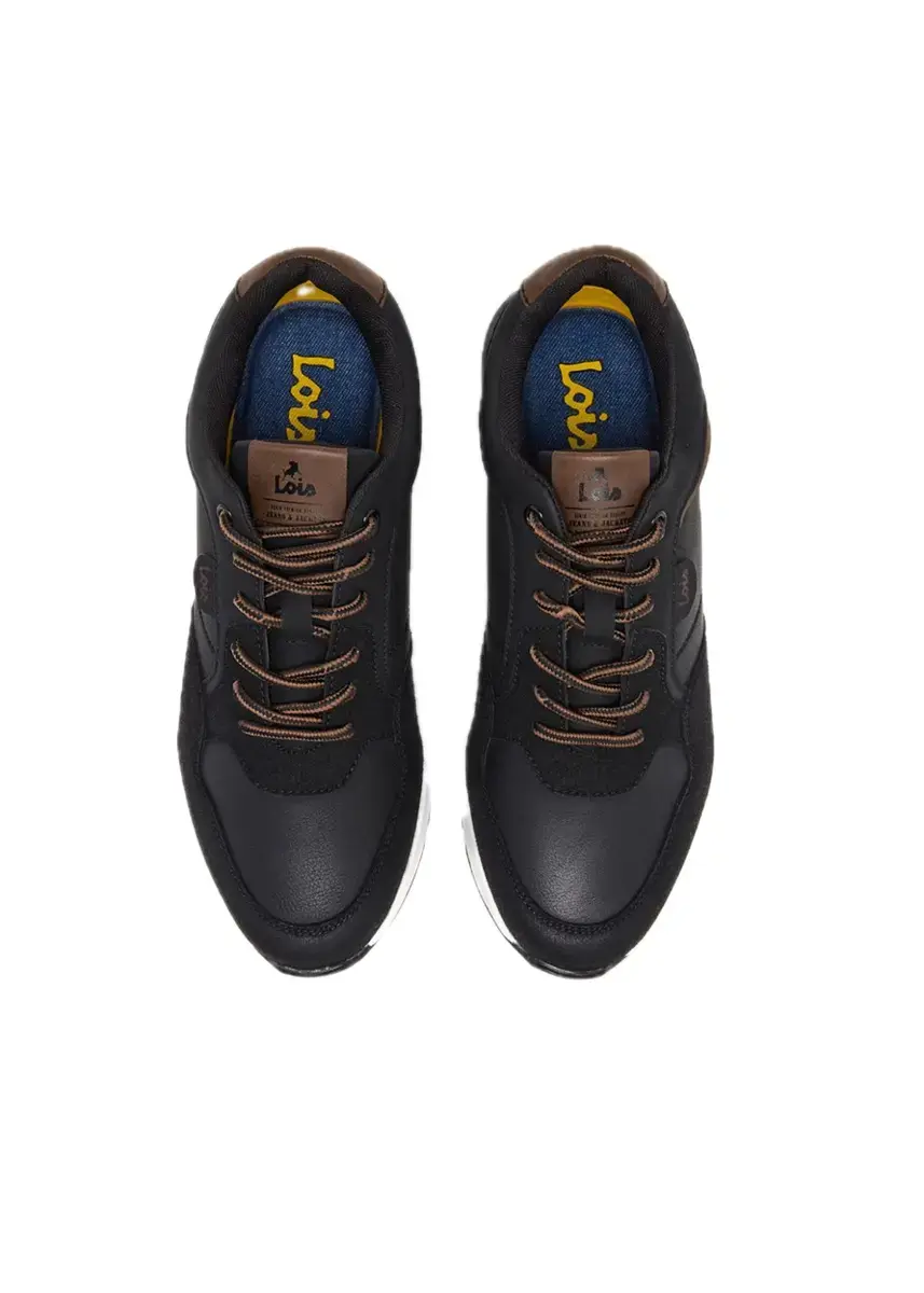 Sneaker estilo runnig de color negro con mezcla de pieles sintéticas en contraste que aportan un look actual.