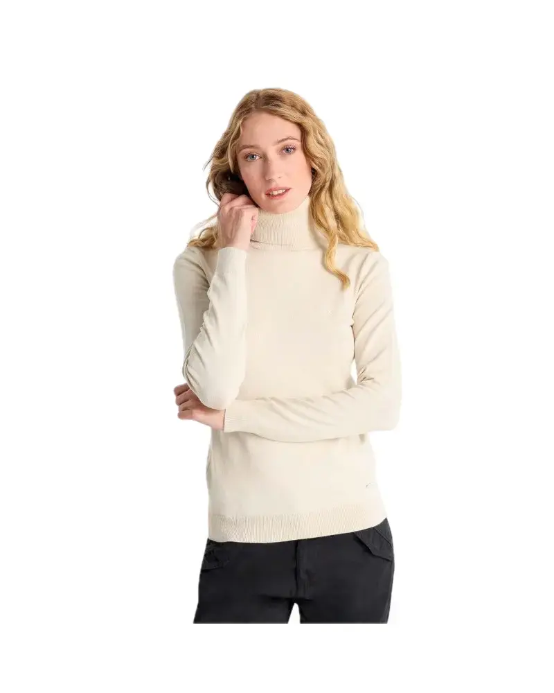 Es un jersey el color beige,diseñado con un elegante cuello cisne que proporciona un estilo sofisticado y versátil para cualquier outfit.