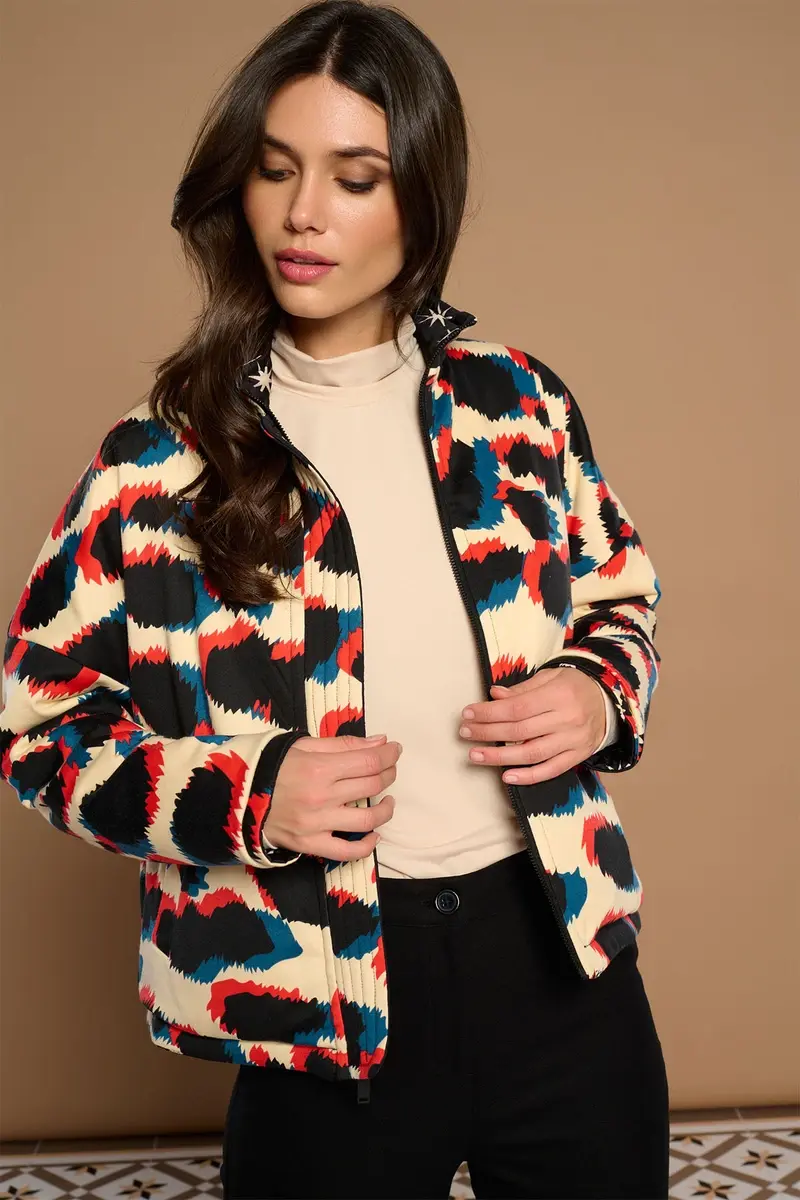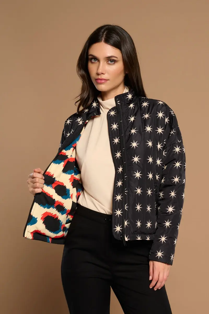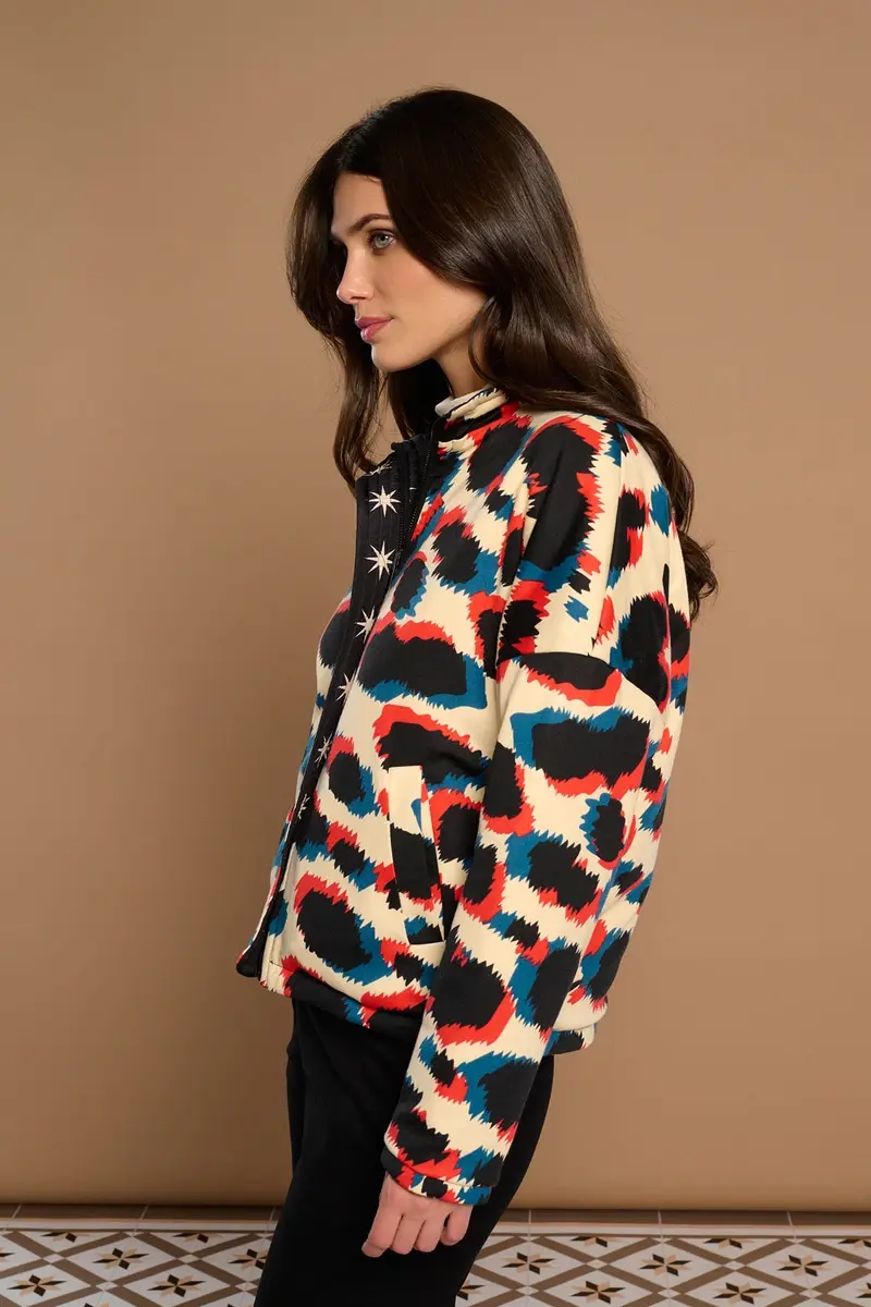 CHAQUETA REVERSIBLE CON CUELLO REDONDO Y MANGA LARGA.ESTAMPADO ANIMAL PRINT/ESTRELLAS.