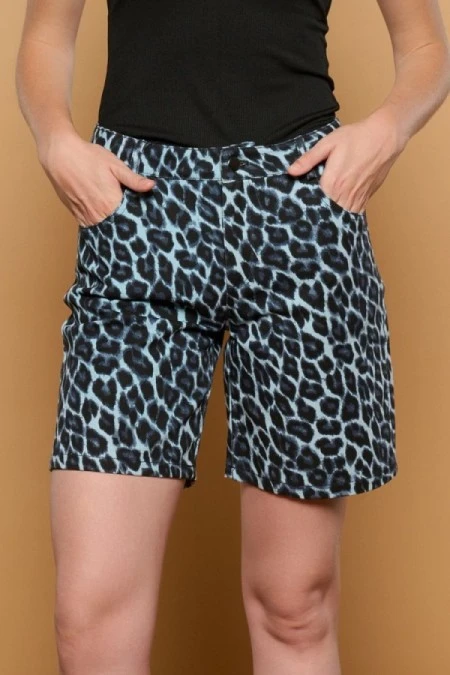 BERMUDA DENIM 100% ALGODÓN,CON ESTAMPADO ANIMAL PRINT.NCO BOLSILLOS Y CIERRE FRONTAL CON BOTÓN Y CREMALLERA.