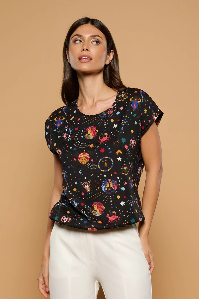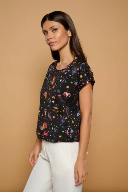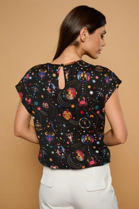 CAMISETA DE MANGA CORTA Y CUELLO REDONDO Y AMPLIO.CIERRE CON BOTÓN EN LA ESPALDA.