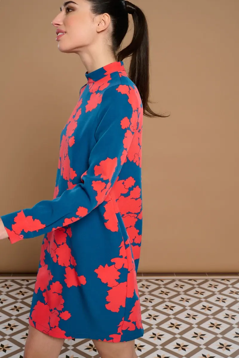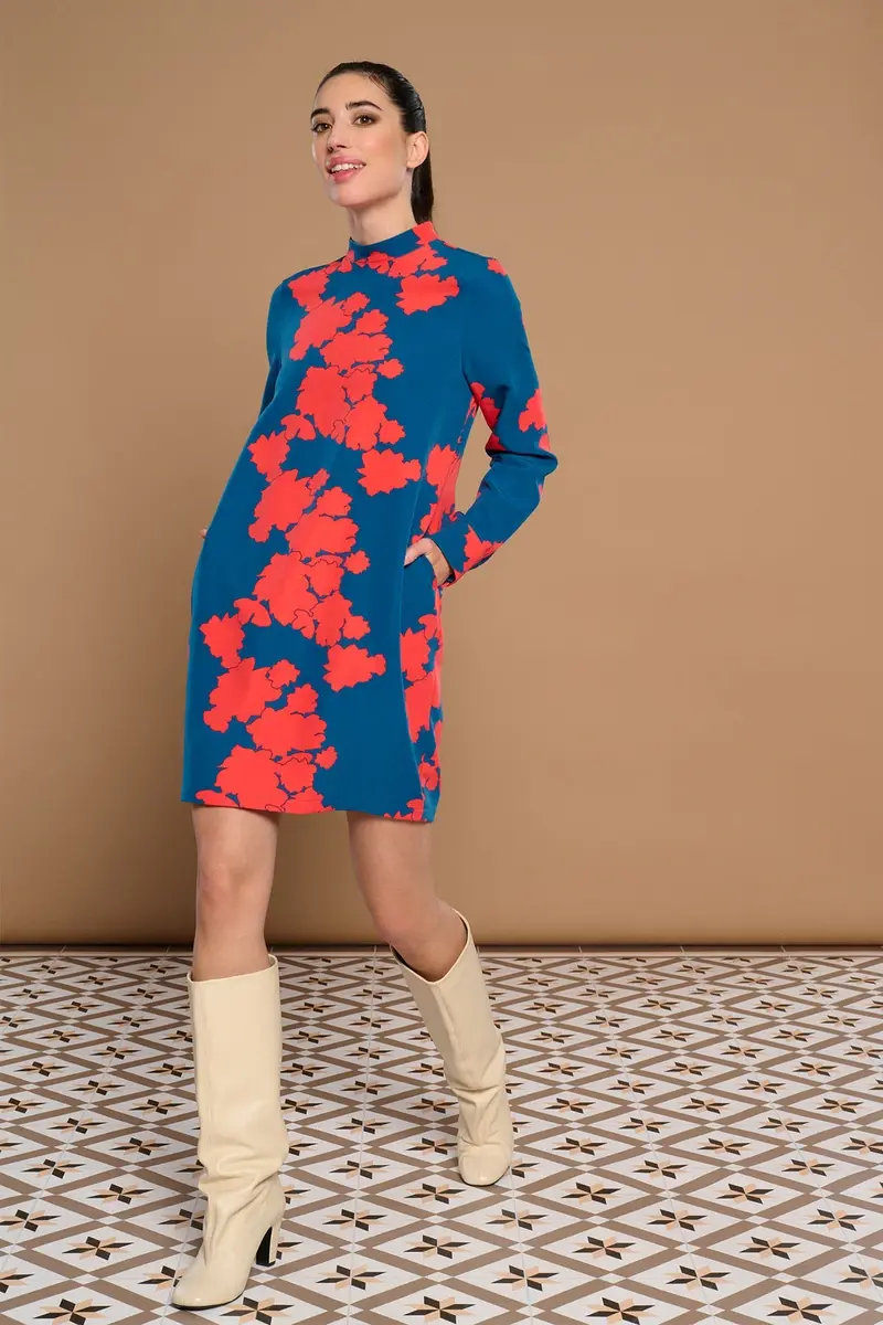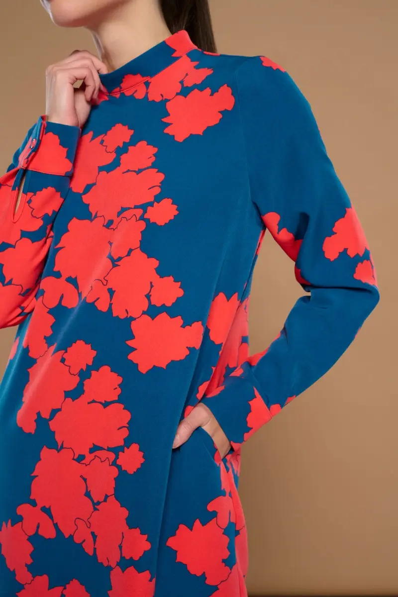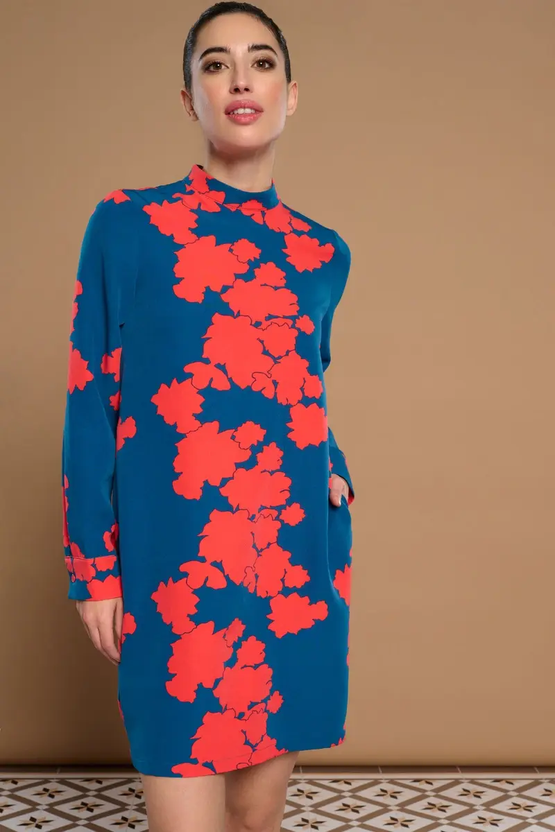 VESTIDO CORTO DE MANGA LARGA CON PUÑO,CUELLO PERKINS,BOLSILLOS LATERALES,FORRO INTERIOR.