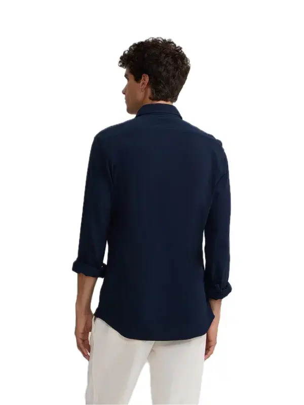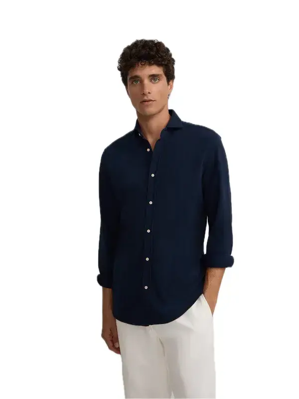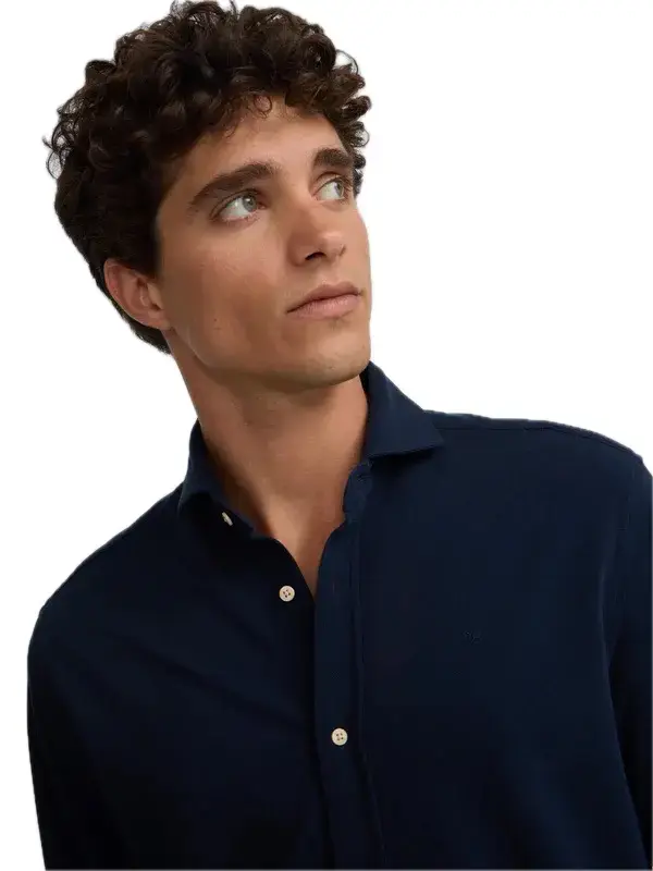 Camisa sport lisa,color azul marino,en tejido de micropiqué confoert,confeccionada con 100% algodón,lo que le da comodidad al igual que suavidad a la prenda.