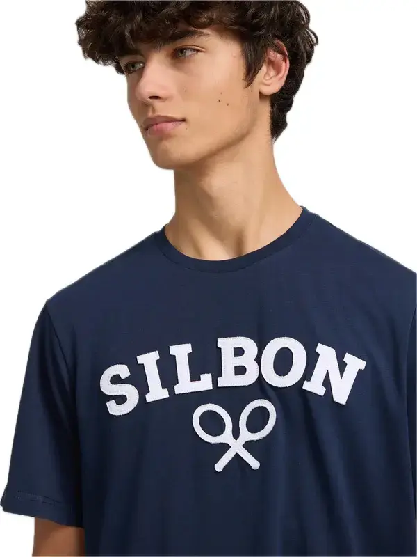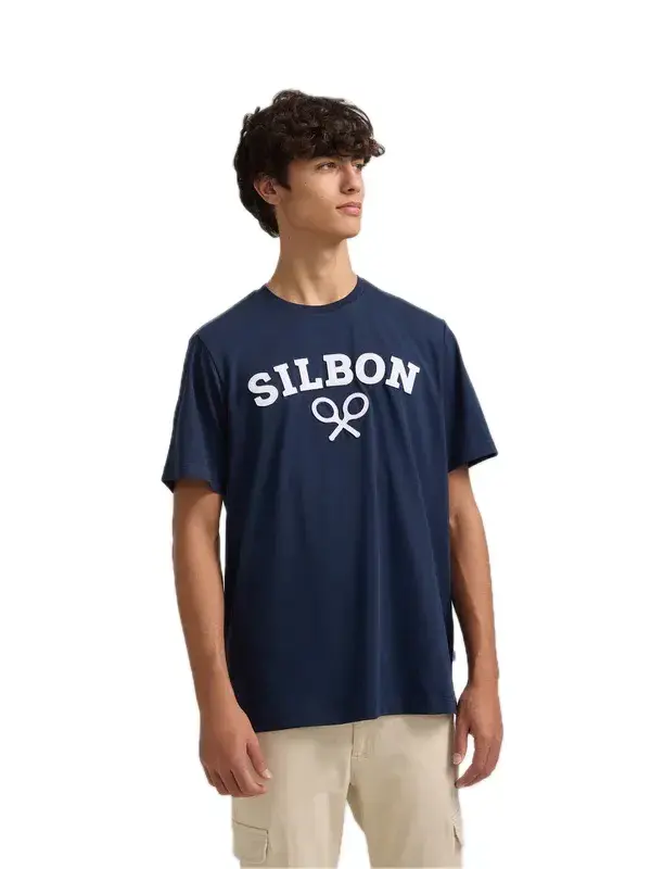 Camiseta de manga corta confeccionada en 100% algodón lo que le da comodidad,de corte regular fit.Presenta cuello redondo,cuenta con apliques de tejido sobrepuesto de letras y raquetas en el torso en color blanco.