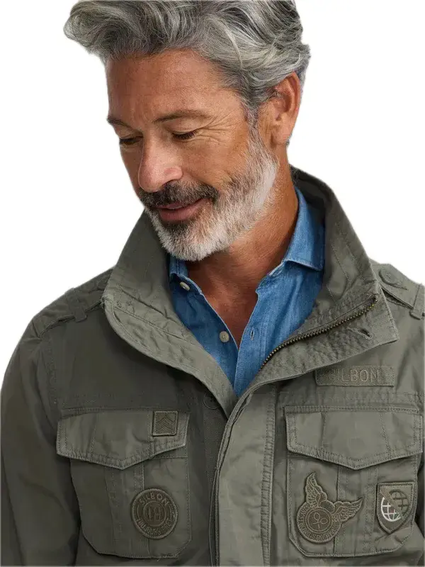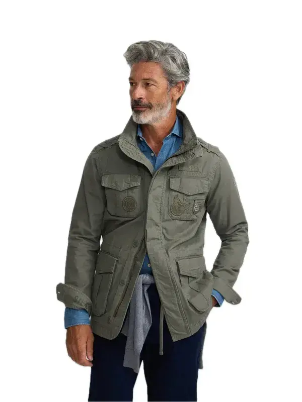 Chaqueta militar confeccionada en 100% algodón BCI, lo que le proporciona comodidad,de corte regular fit.