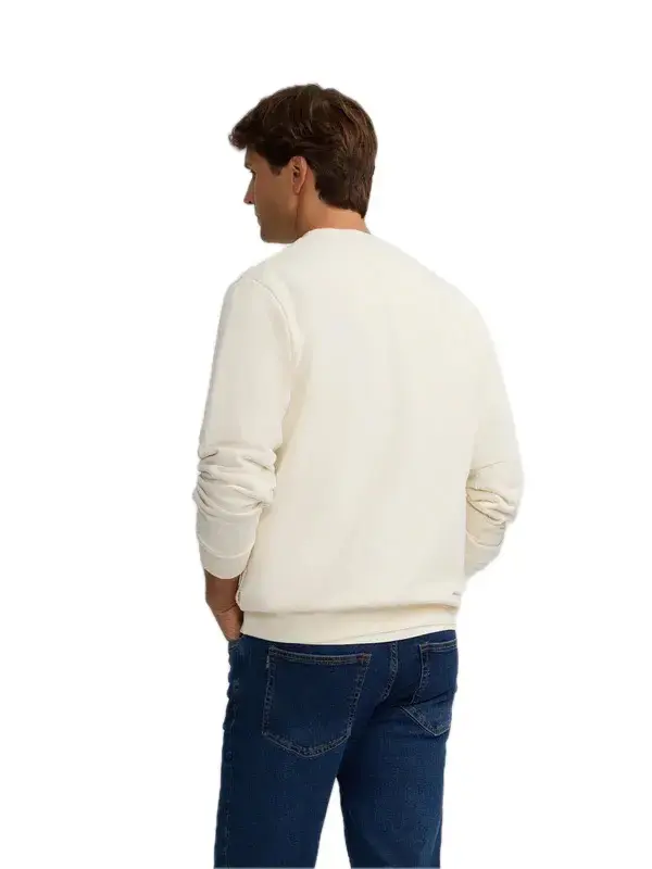 Sudadera en color crema confeccionada ccon cuello redondo,manga larga con puño elástico.